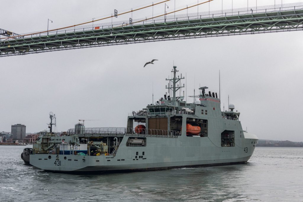 The HMCS Margaret Brooke sets sail on a 4-month mission, OpProjection 2025. Image source: Royal Canadian Navy