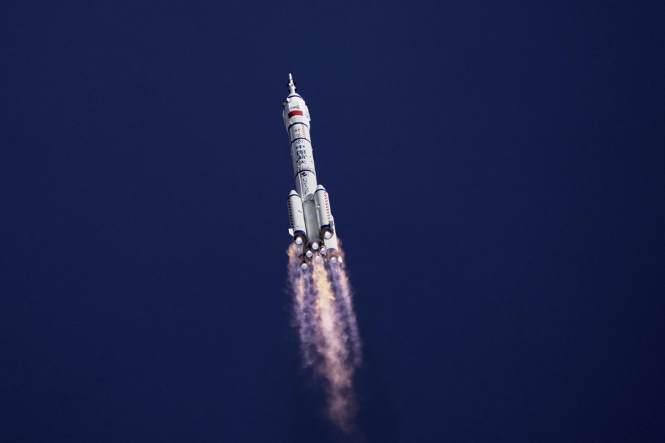 China’s Long March 2F rocket, carrying three astronauts for the Shenzhou 20 manned space mission, heads for a space station, at the Jiuquan Satellite Launch Center in Jiuquan, northwestern China, Thursday, April 24, 2025. (AP Photo/Andy Wong)